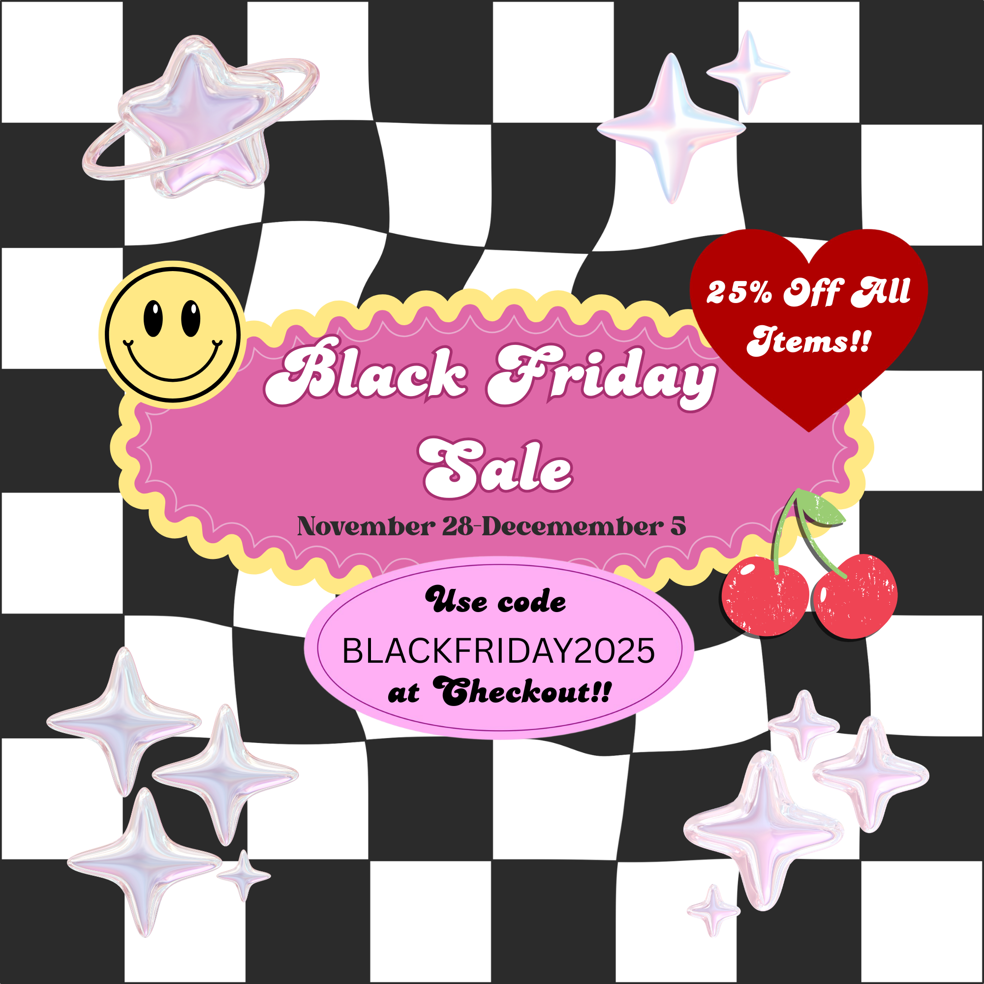 Save 25% on all items with code 'BLACKFRIDAY2025' at checkout. Sale going on now until December 5th, 2025.